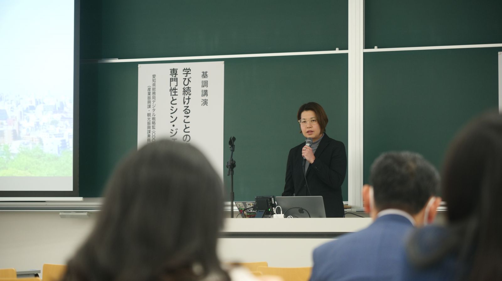 当日は、2026年4月開設予定の経営学部およびデザイン工学部の構想、ならびに生成AIを活用した教育・研究の取り組みについて紹介したほか、愛知県総務局 デジタル戦略監(CDO) 中谷純之氏を講師に迎え、基調講演「学び続けることの意味――専門性とシン・ジェネラリスト」を実施しました。