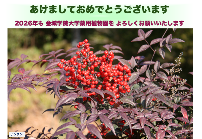 金城学院大学薬用植物園は、薬学教育の一環として、学生に薬用植物や生薬についての生きた知識を学ばせることを目的に設置されております。学生が気軽に観察できる環境を提供するという観点から学生たちの目に留まりやすい敷地内に作られております。薬局方に収載されている生薬の原料植物を中心に、代表的な薬用植物の収集と栽培を行っております。実物を継続的に観察できる環境を作り、周囲の雑木林や本学キャンパス東側敷地内の八竜湿地とともに,教科書だけでは学びえないことも学べる学習環境を提供しています。また,水生植物用の池はビオトープの研究にも活用されています。