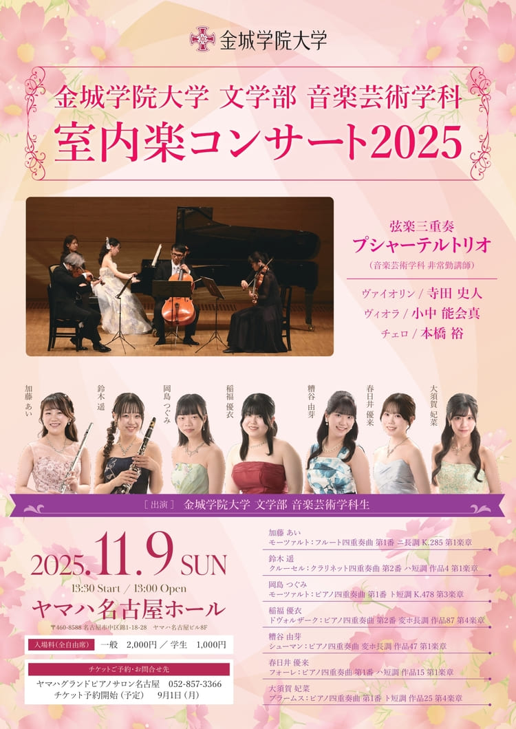金城学院大学 文学部 音楽芸術学科「室内楽コンサート2025」