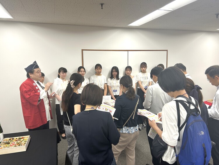 会場には数多くのおせち料理が並び、取材に訪れたメディア関係者に向けて、学生たちは緊張しながらも自ら考案したおせちを紹介しました。今回の経験は、学生たちにとって大きな学びとなりました。