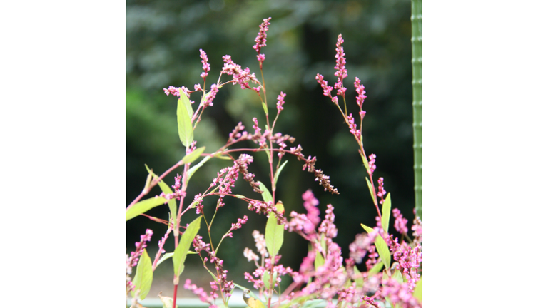 写真の植物はタデ科のアイという植物。タデ科は「蓼食う虫も好き好き」のタデ。美味しくない植物ですが、これは食べるための植物ではなく、アイの名前でお察しの通り、藍染の青色の染料になる植物です。葉を水に浸してよく揉むと青色の汁が出てきます。それに布をつけて青色を染み込ませ、空気に晒すと酸化反応が進んでさらに青が鮮やかになるという仕掛け。何度か浸けて干すを繰り返すと色が濃くなってきます。色が綺麗ということもありますが、菌の繁殖を抑える作用もあるので、藍染の着物は皮膚病の予防にもなるという一石二鳥。先人たちの知恵ですね。