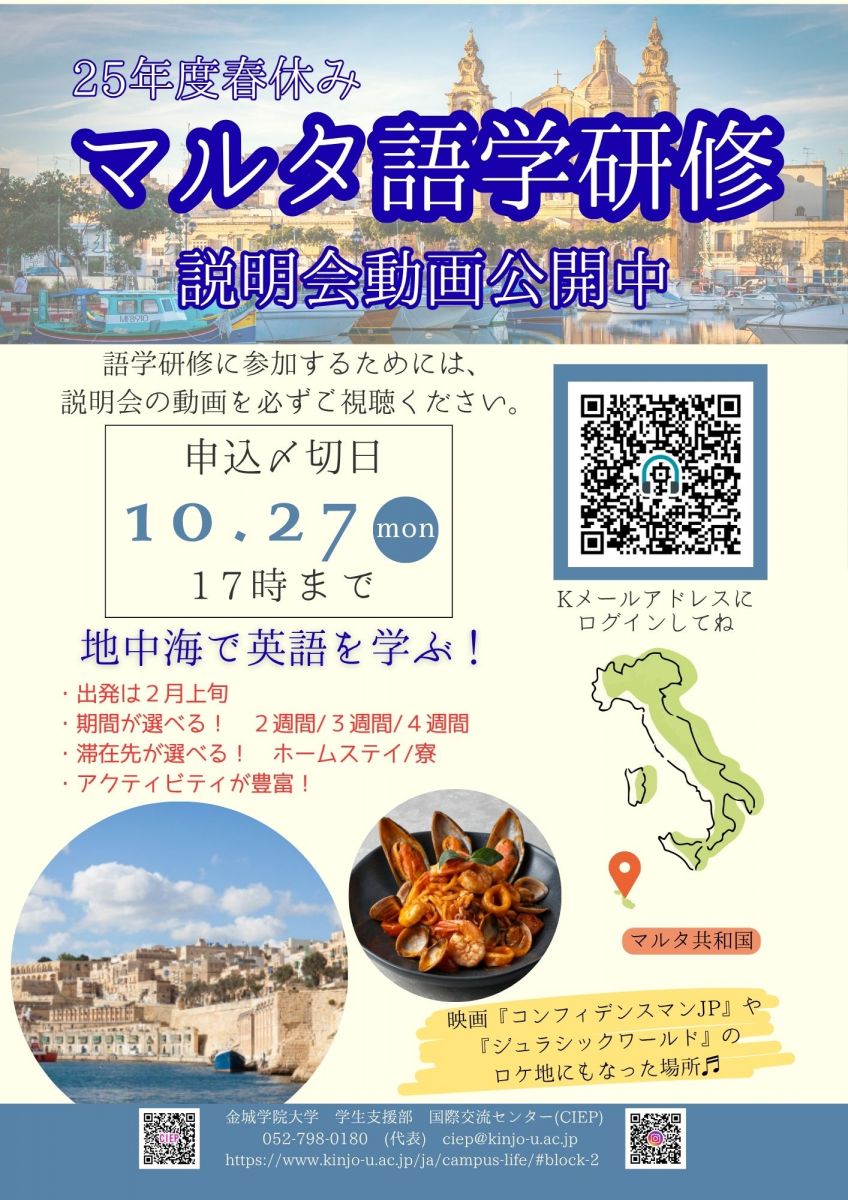 「2025年度春期マルタ英語語学研修」の参加者を募集しています。