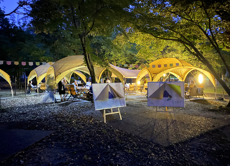 仕事、将来、人生、恋愛…講師のおふたりや、地元クリエイターたちと学生がバーベキューを囲みながら、キャンプ場のあちらこちらで熱いトークが続きました。