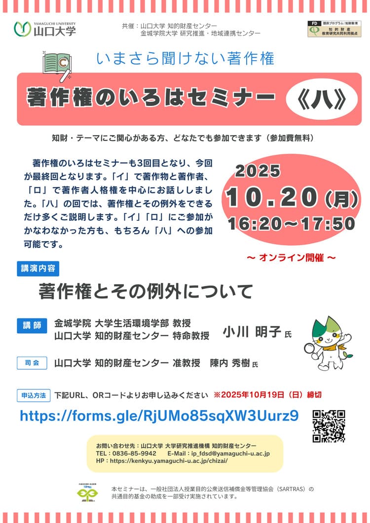 【共催】山口大学 大学研究推進機構 知的財産センター、金城学院大学 研究推進・地域連携センター