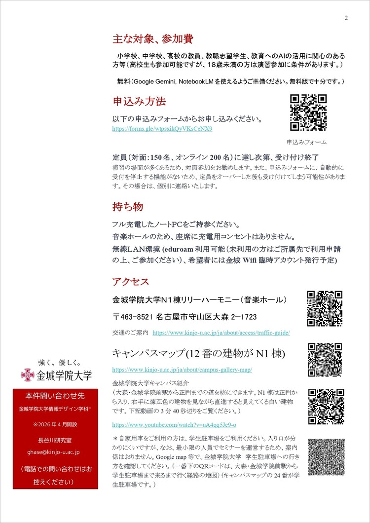 【会場】 金城学院大学N1棟 リリーハーモニー(ハイブリッド開催)