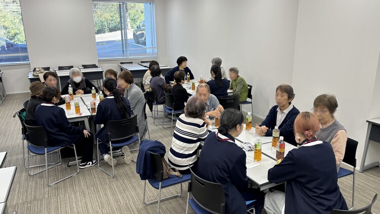 演奏後は、学生と参加者の皆さんでカフェタイムを楽しみました。各テーブルから楽しそうな笑い声や会話が聞こえ、和やかな交流のひとときとなりました。