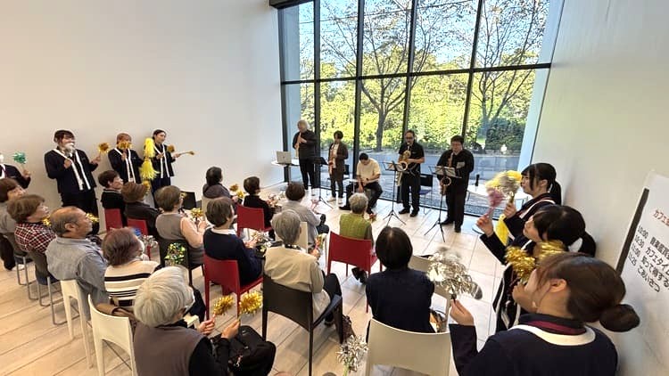 今回は「キャラバンよつ葉」をお招きして、音楽鑑賞会を実施しました。迫力あるサックスの演奏がホールに響き渡り、マツケンサンバやズンドコ節などの名曲で会場は大いに盛り上がりました。