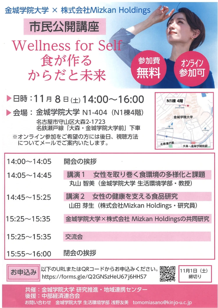 女性の健康と食環境の多様化をテーマとした、食環境栄養学科と株式会社Mizkan Holdingsの連携による講座です。