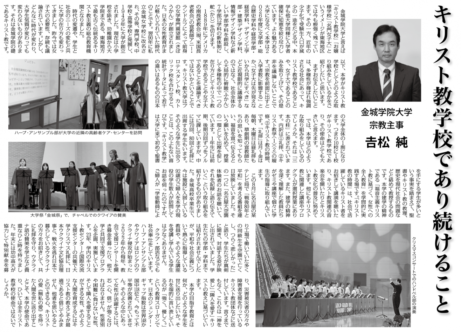 本学の宗教主事 吉松純 教授が、「対話する力」をテーマとして、クリスチャン新聞の取材を受け、記事が掲載されました。