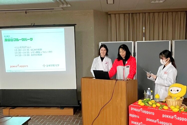 2025年11月9日(日)、ポッカサッポロフード&ビバレッジ、東谷山フルーツパーク主催の食育講座「コツコツ貯金大作戦」が開催され、食環境栄養学科の3年生が講師を務めました。