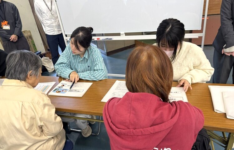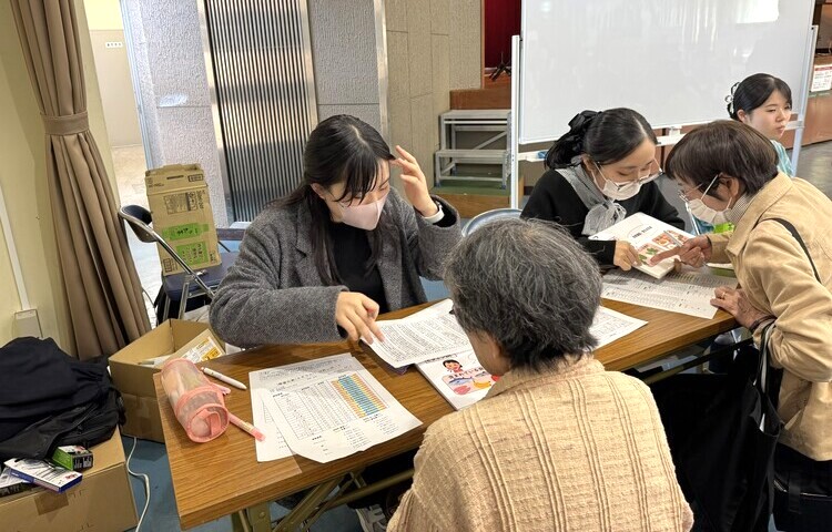 11月14日(金)に名東区役所講堂で開催された「健康・介護予防フェスタ2025」(名東区北部いきいき支援センター主催)において、本学食環境栄養学科卒の大学院生3名(武川 未奈さん、新美 友佳子さん、間 奏恵さん)と太田ゼミの学生2名(南 凜さん、吉澤 希さん)が、愛知東邦大学(人間健康学部・松永昌宏教授)のブースに参加し、栄養状態の測定および栄養相談を担当しました。