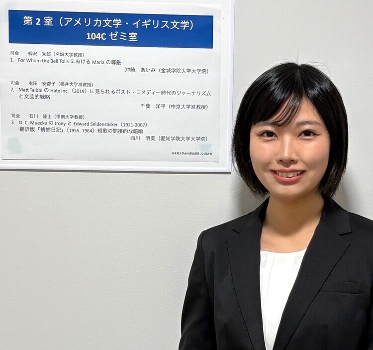大学院前期課程の院生にとって、日本英文学会での発表は大きな挑戦となりますが、沖崎さんは入念な準備のもと、日頃の研究成果をしっかりと示すことができました。今後の研究のさらなる発展が期待されます。