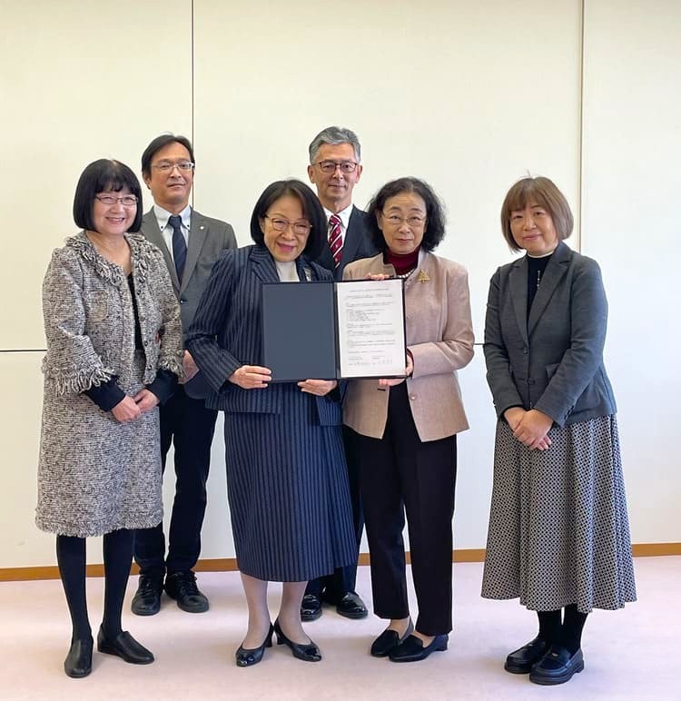 2025年12月10日(水)、本学にて公益財団法人名古屋YWCAとの協定締結式を執り行いました。式では、同法人代表理事・加藤佐紀子様と本学学長・小室尚子が協定書に署名し、書類の受け渡しを行いました。会場は終始和やかな雰囲気に包まれ、相互の取り組みや今後の展望について活発な意見交換が行われました。