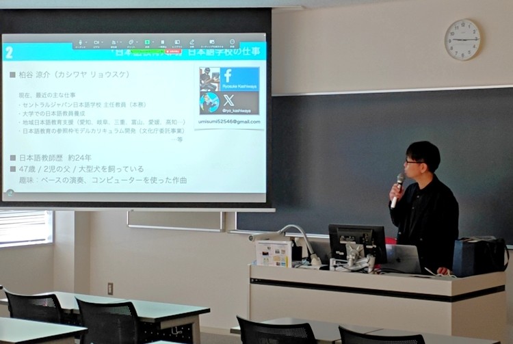 2025年11月4日(火)、日本語教育プログラムの入門科目である「日本語教育入門」にセントラルジャパン日本語学校で日本語を教える柏谷涼介先生にご登壇いただきました。
