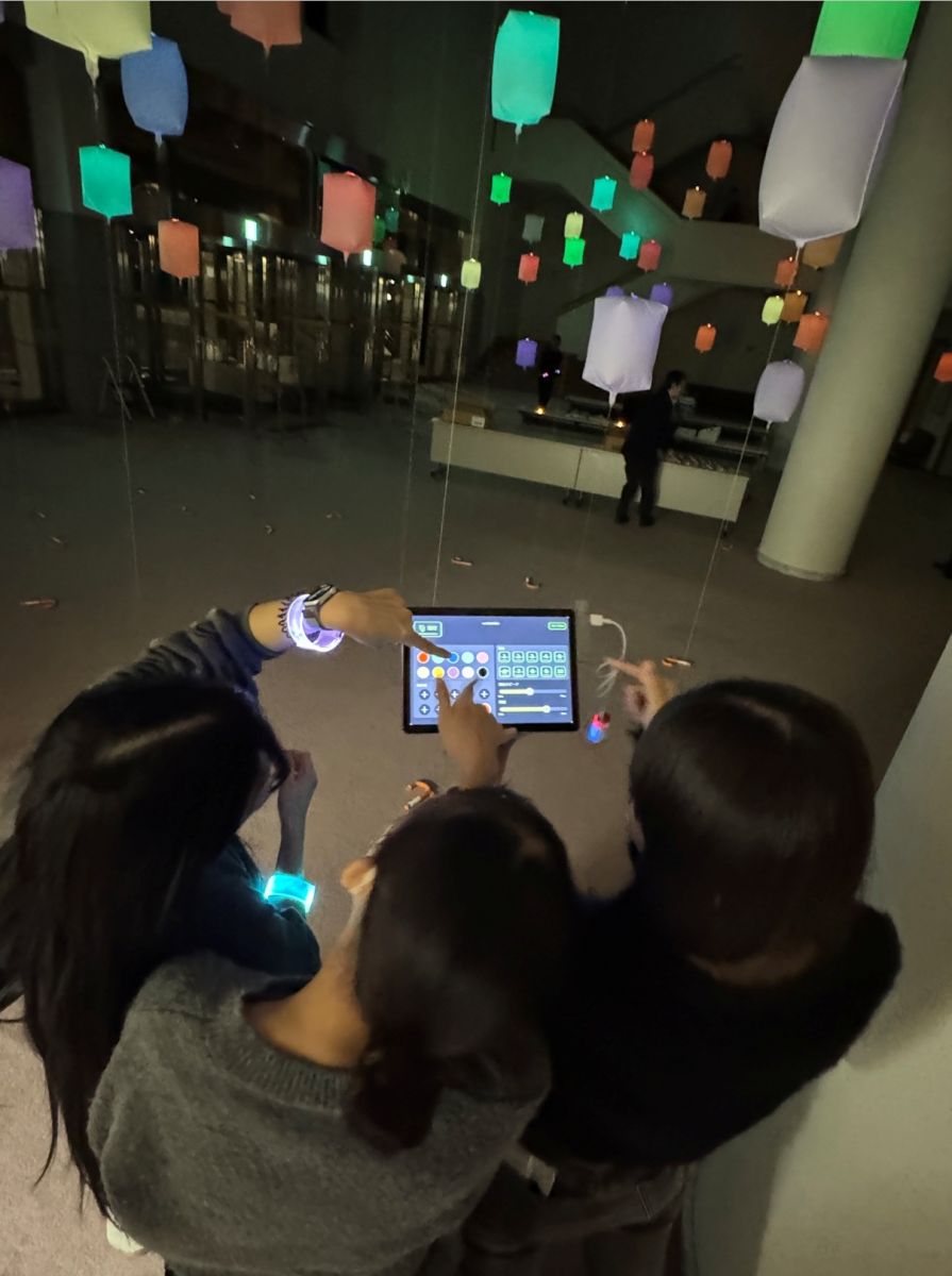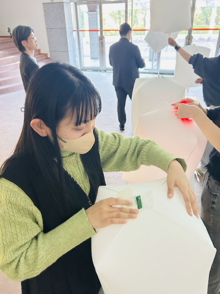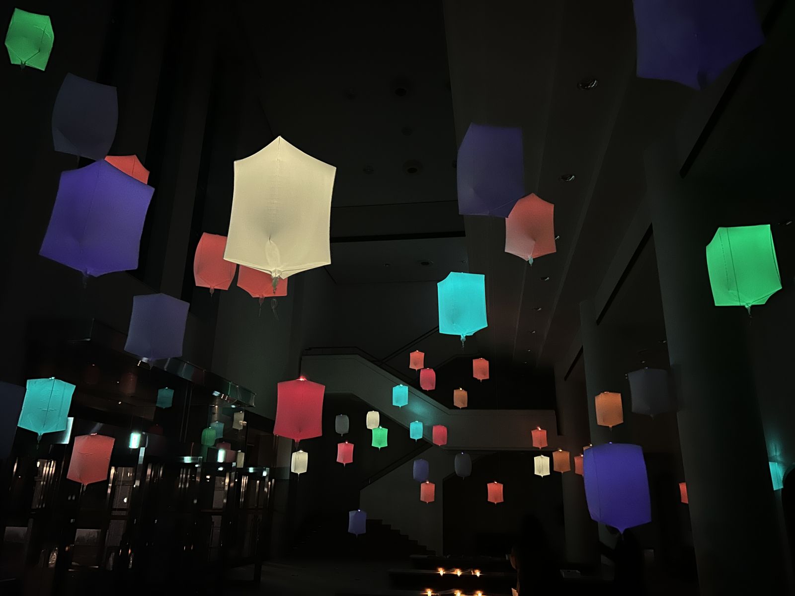 当日は、講堂ホワイエにおいて、日本ガイシ株式会社が開発した超薄型・小型リチウムイオン二次電池「EnerCera®(エナセラ)」を使用したランタンによる空間演出を行いました。