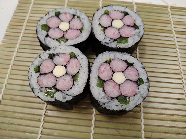 講義では中央卸売市場の役割や、生鮮食料品である魚が消費者のもとへ届くまでの市場流通の仕組みについて、写真を用いながら分かりやすくご説明いただきました。その後、デコ巻き寿司づくりでは、きれいなお花の巻き寿司に挑戦しました。