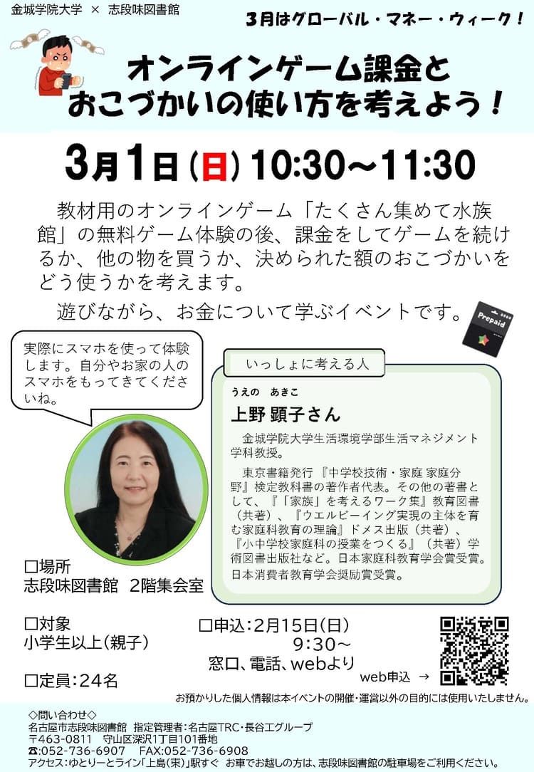 名古屋市守山区の志段味図書館との連携講座として、小学生や親子を対象とした金融教育講座を実施しました。