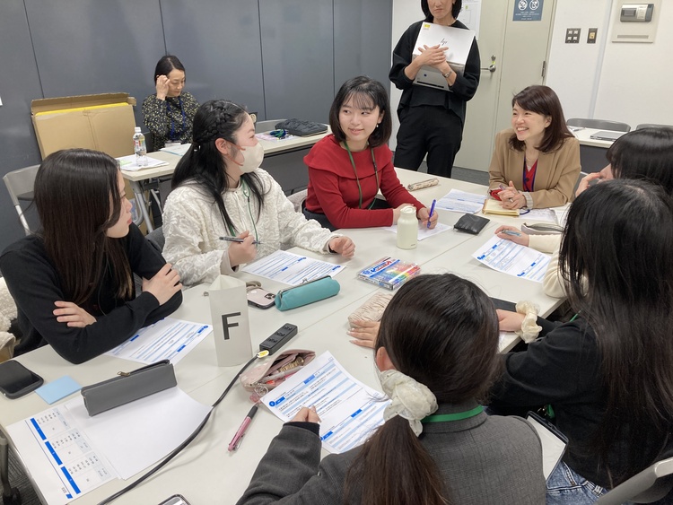 当日は、NTTグループの女性役員の方々がファシリテーターとして参加。企業で活躍する社会人と大学生が対話を重ねながら、自由な発想でアイデアを広げました。世代や立場を越えた率直な意見交換が行われ、会場は終始活気にあふれていました。