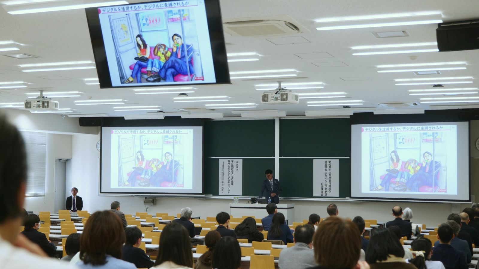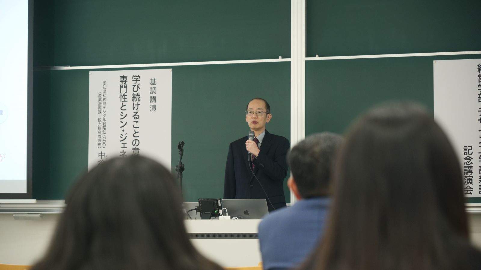 当日は、2026年4月開設予定の経営学部およびデザイン工学部の構想、ならびに生成AIを活用した教育・研究の取り組みについて紹介したほか、愛知県総務局 デジタル戦略監(CDO) 中谷純之氏を講師に迎え、基調講演「学び続けることの意味――専門性とシン・ジェネラリスト」を実施しました。