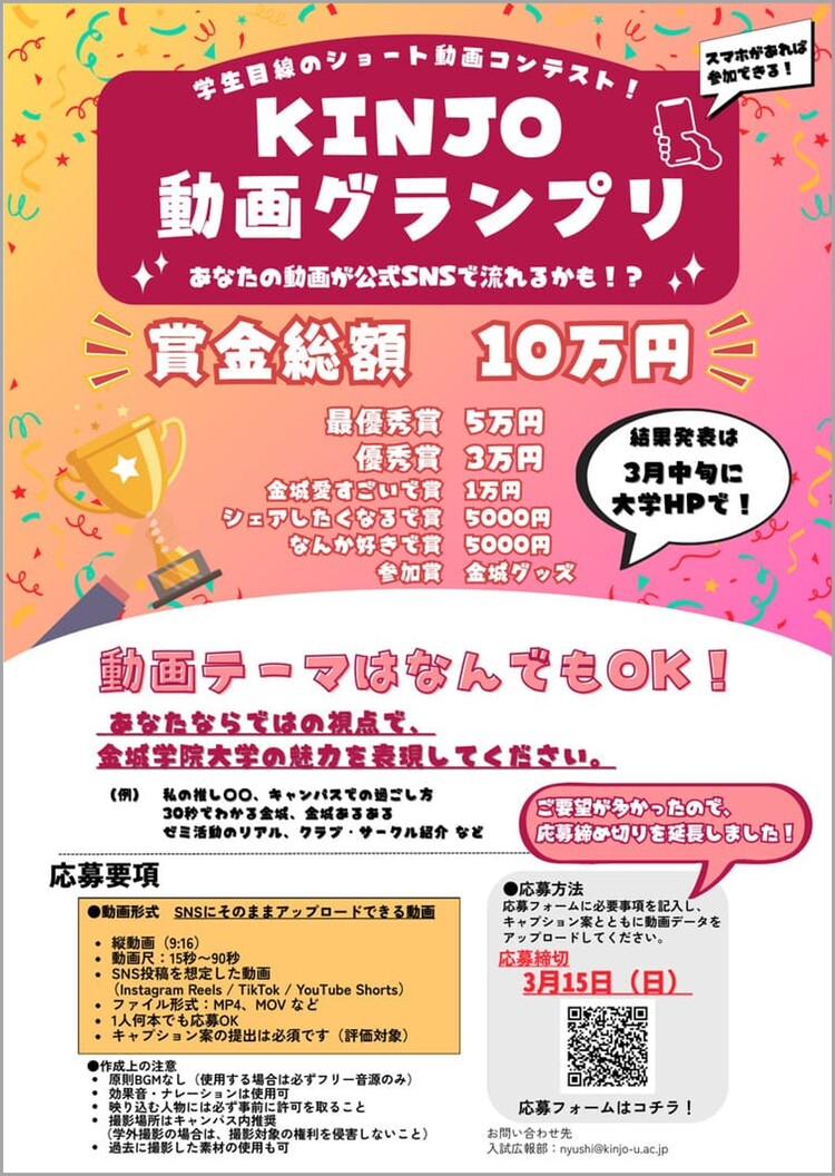 学生ならではの視点で金城学院大学の魅力を発信する「KINJO動画グランプリ2025」。