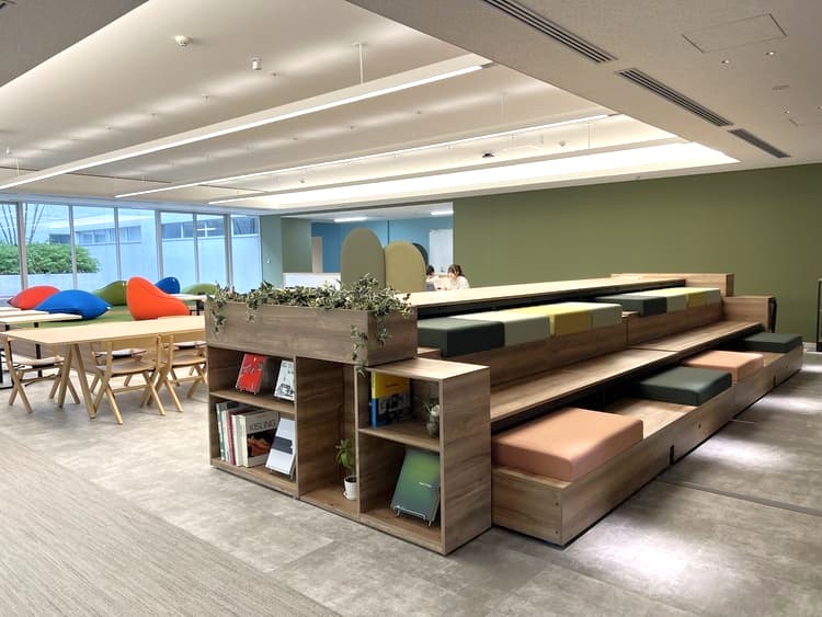 一方、HARAPPA(ハラッパ)は情報デザイン学科の専用施設として、Fab KOBO、ガレージ1~4、プロジェクトルーム、リモートワークブースなど多様な空間を備えています。プログラミングや映像・デザイン制作、ドローンやロボット開発、プレゼンテーションまで幅広い活動に対応し、AIやデータサイエンス、メディア表現、社会課題解決を横断する学びを支える創造・交流拠点として整備されました。