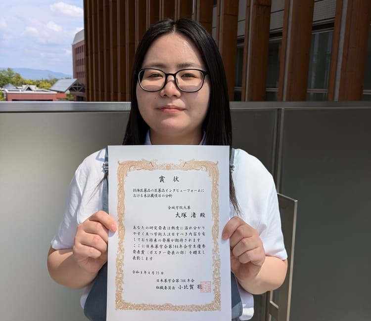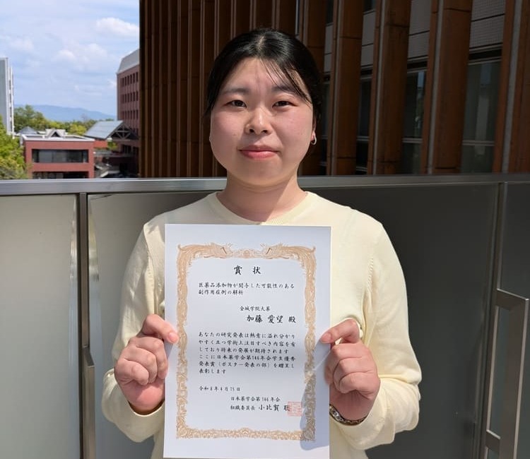 2026年3月26日~29日に大阪で開催された日本薬学会 第146年会において、矢野研究室の薬学部薬学科6年生(発表時5年生)の大塚 渚さん、加藤 愛望さんの2名が学生優秀発表賞を受賞しました。