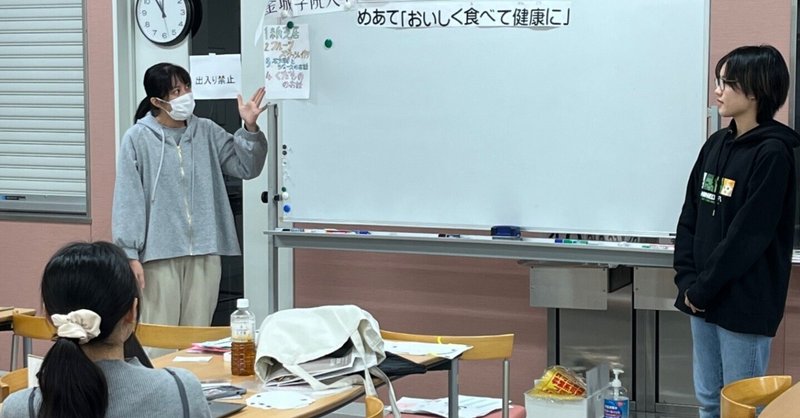 2025年11月 丸山ゼミ3年生です。11月21日に、株式会社名給新戦略室 メニュー開発課のF氏とK氏に金城学院大学にお越しいただき、春の展示会に向けて初回の打ち合わせを行いました。株式会社名給は、学校給食、産業給食等関係の食材などの総合販売を行う企業です。3月24日に株式会社名給の展示会が吹上ホールで開催されます。この展示会は「メニュー」の新しい捉え方を発見できる情報提案型の展示会で、毎回テーマを設定し、新しい食のトレンドを発信するものです。私たち給食経営管理ゼミでは、2016年から展示会の学生ブースを設けていただいています。テーマはその年その年で異なり、卒業研究で取り組む内容やその年の食のトレンドなど様々です。2026展示会のテーマの意見出しをしている私たち