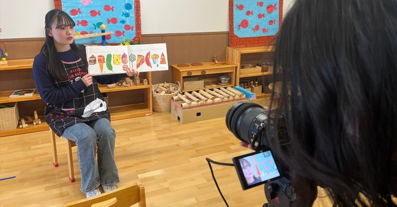 国際情報学科教員の大澤広暉(専門:映画・CM制作)です12月12日も、大学公式プロモーションビデオ制作の撮影を学生たちが行いましたよ!まずは、現代子ども教育学科。子供学保育実習室にて、絵本の読み聞かせの様子を撮影しました。他学科の学生はなかなか入ることができない場所にも撮影でお邪魔させていただくことができ、撮影学生たちも楽しんでおります。