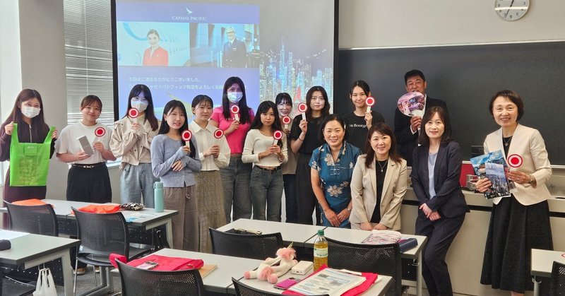 英語英米文化学科教員の井之上洋子(専門:エアライン)です。2025年後期の共通教育科目「キャリアプロジェクト」が始まりました!HISとの産学連携プロジェクトとして香港旅行プランを企画する授業です。香港政府観光局の方から、香港観光クイズを通して香港の魅力を学び素敵な香港グッズもいただきました